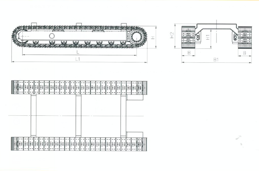 備:1、連接式擺動(dòng)橫梁履帶底盤(pán),支重輪為滾動(dòng)軸承結(jié)構(gòu);